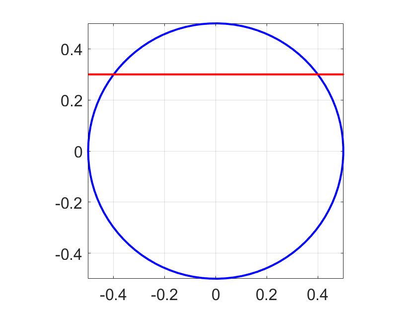 MATLAB stock การหาจุดตัดระหว่างเส้นตรงและวงกลม MATLAB version